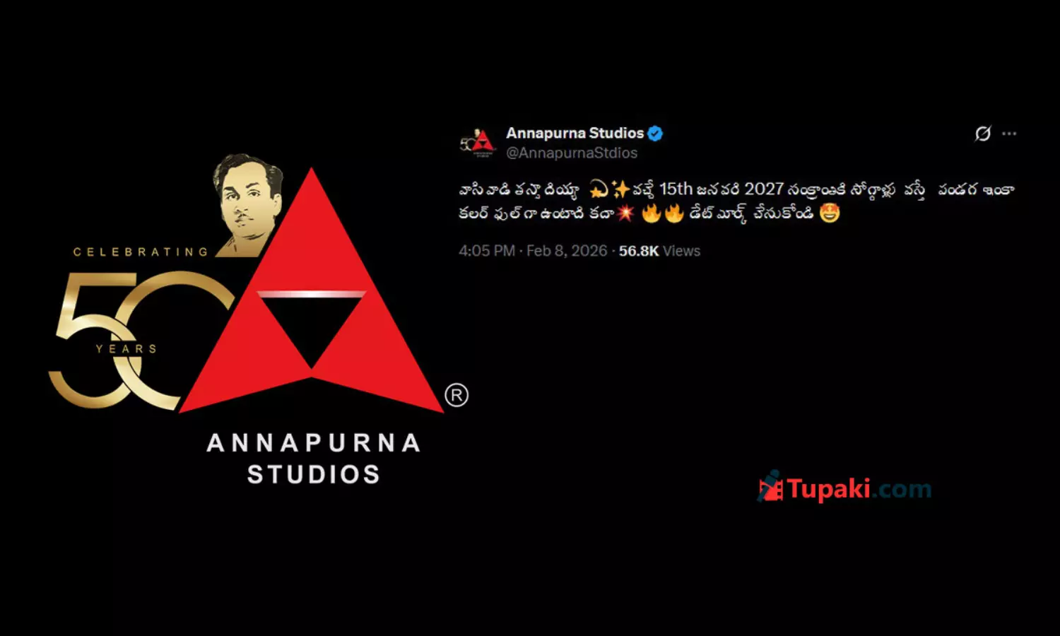 సంక్రాంతి సీజన్ అంటే టాలీవుడ్ కు అసలైన పండుగ అని చెప్పడంలో డౌట్ అక్కర్లేదు.పెద్ద హీరోల సినిమాలు, ఫ్యామిలీ స్టోరీలకు కలిసొచ్చే సమయం ఇదే. అయితే ప్రతి ఏడాది లాగానే 2027 సంక్రాంతికి కూడా భారీ చిత్రాల సందడి ఉండబోతోందనే ఇప్పటికే క్లారిటీ వచ్చింది. అదే సమయంలో తాజాగా టాలీవుడ్ ప్రముఖ నిర్మాణ సంస్థ అన్నపూర్ణ స్టూడియోస్ చేసిన ఒక్క ట్వీట్ ఇప్పుడు సినీ వర్గాల్లో చర్చనీయాంశంగా మారింది.