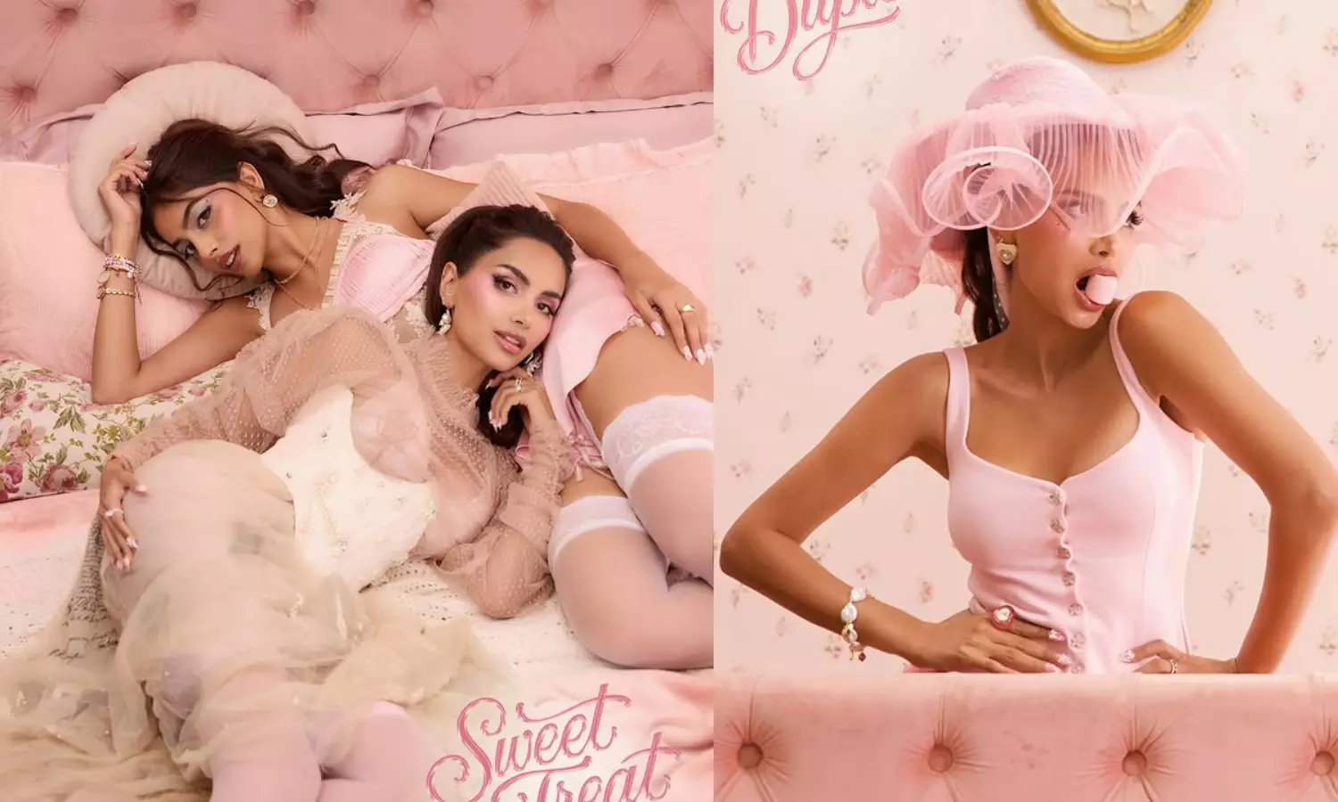 సోషల్ మీడియాలలో గ్లామరస్ తారకల సందడి ఎప్పుడూ కొత్తగానే ఉంటుంది. తాజాగా బానిటా సంధు, ప్రముఖ గ్లోబల్ ఇన్ఫ్లూయెన్సర్ దీపా బుల్లర్ ఖోస్లా కలిసి చేసిన ఫోటోషూట్ నెట్టింట సెన్సేషన్ సృష్టిస్తోంది. వీరిద్దరూ ఒక అంతర్జాతీయ కమర్షియల్ బ్రాండ్ ప్రచారం కోసం జతకట్టారు. పింక్ కలర్ మిరుమిట్లు గొలిపే దుస్తులలో ఒకరితో ఒకరు పోటీ పడుతూ ఇచ్చిన పోజులు ప్రస్తుతం కుర్రకారు హృదయాలను కొల్లగొడుతున్నాయి. సన్నజాజి తీగల్లాంటి భామల నడుము సొగసులు చూస్తుంటే అభిమానులు మైమరచిపోతున్నారు. ఈ ఫోటోఫ్రేమ్ లో ఎంతో సన్నిహితంగా కలిసిపోయి ఫోజులిచ్చిన అందాల భామలపైనే యువతరం కళ్లన్నీ.
