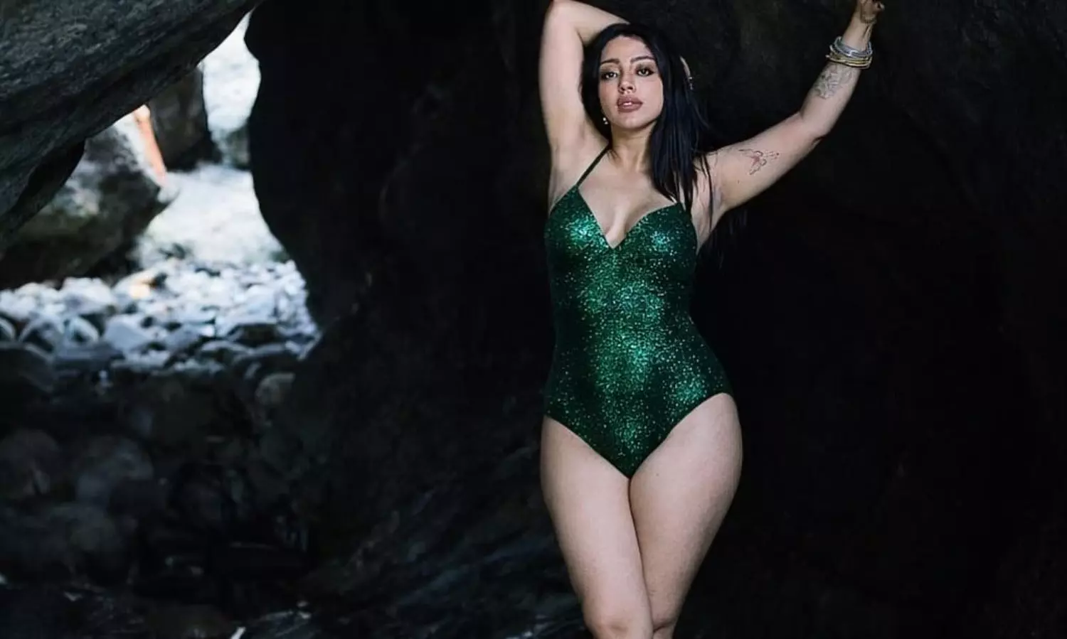 ఈ మధ్యకాలంలో ఎక్కువగా సినిమా సెలబ్రిటీలు తమ ఉనికిని చాటుకోవడానికి సోషల్ మీడియాను అతిపెద్ద ప్లాట్ఫారం గా చేసుకుంటున్నారు. సినిమాలలో అవకాశాలు వచ్చిన రాకపోయినా ఇటు సోషల్ మీడియాలో మాత్రం నిత్యం యాక్టివ్ గా ఉంటూ ఫాలోవర్స్ ను పెంచుకుంటున్నారు. అందులో భాగంగానే ఎంతోమంది గ్లామర్ ప్రదర్శిస్తూ అభిమానులలో విపరీతమైన క్రేజ్ సొంతం చేసుకుంటున్నారని చెప్పాలి . ఈ క్రమంలోనే తన అందంతో, అభినయంతో ఎప్పటికప్పుడు ట్రెండీ ఔట్ఫిట్స్ తో వార్తల్లో నిలిచే దేవియాని శర్మ ఇప్పుడు తాజాగా స్విమ్ సూట్ తలపించేలా గ్రీన్ కలర్ డ్రెస్ లో కనిపించి తన అందాలతో మెస్మరైజ్ చేసింది.