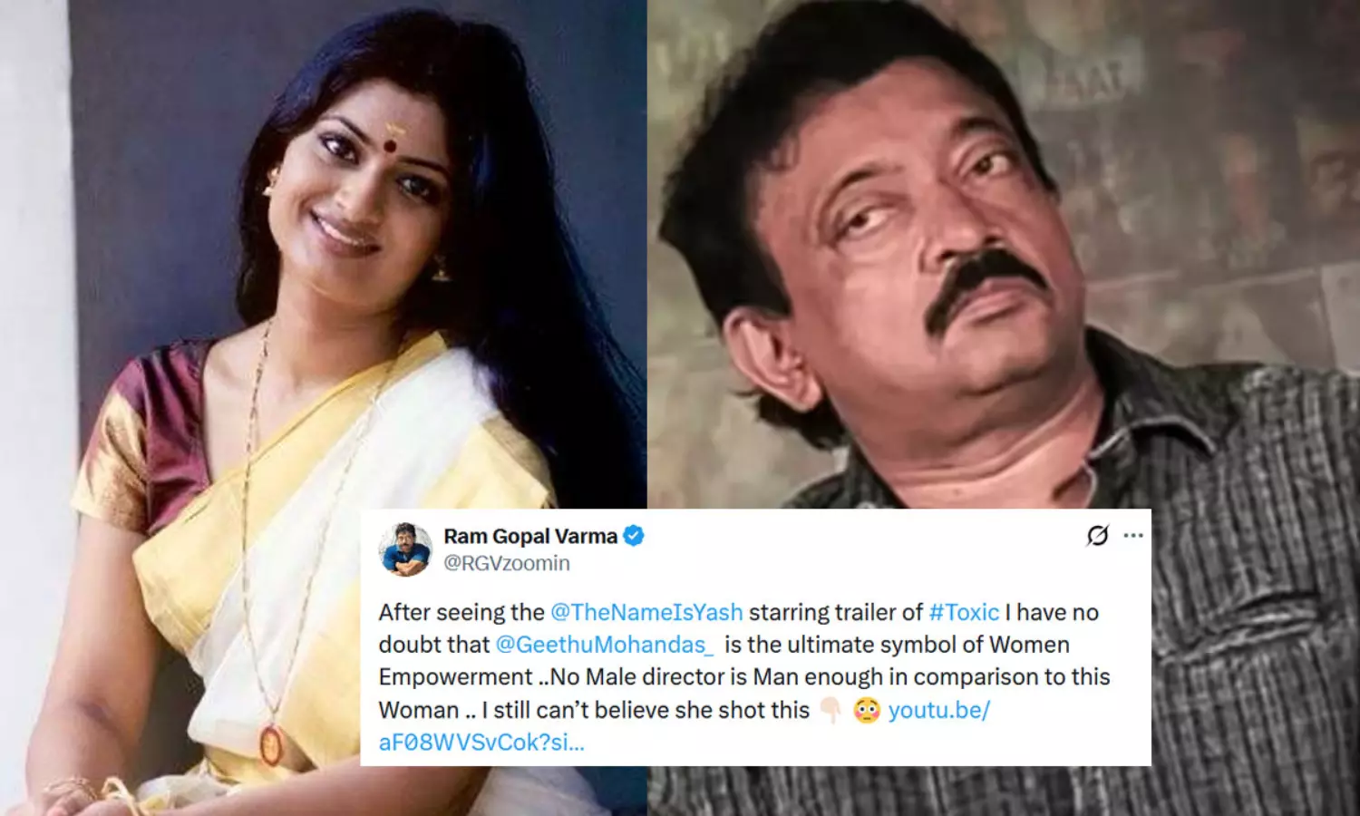 ఆర్జీవీ ఎక్స్ ఖాతాలో ప్రశంసల మోత మోగించాడు. టాక్సిక్ టీజర్ చూశాక గీతూ మోహన్ దాస్ మహిళా సాధికారతకు నిలువెత్తు నిదర్శనమని నాకు అర్థమైంది! అని వర్మ ప్రశంసించాడు.;