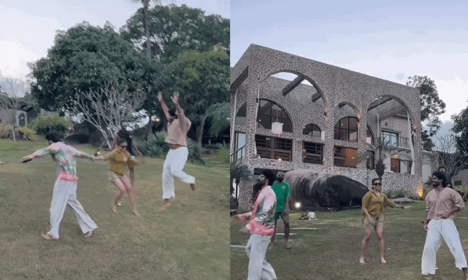 టాలీవుడ్ బ్యూటీఫుల్ కపుల్ విజయ్ దేవరకొండ, రష్మిక మందన్నల పెళ్లి సందడి కంటిన్యూ అవుతుంది. తాజాగా ఆనంద్ దేవరకొండ తన ఇన్స్టాగ్రామ్లో షేర్ చేసిన ఒక వీడియో ఇప్పుడు సోషల్ మీడియాను షేక్ చేస్తోంది. పెళ్లి తర్వాత కొత్త జంట విజయ్-రష్మిక, ఆనంద్ మరియు వారి స్నేహితులతో కలిసి ఫుల్ జోష్లో స్టెప్పులేస్తున్నారు. ముఖ్యంగా ఆనంద్ కొత్త సినిమాలోని పాటకు వీరంతా కలిసి వేసిన డ్యాన్స్ చూసి ఫ్యాన్స్ ఫిదా అవుతున్నారు. 'విరోష్' జంట ఆటపాటలతో పరవశించిపోతున్న ఈ వీడియో నెట్టింట విపరీతంగా వైరల్ అవుతోంది. ఆ విశేషాలు చూద్దాం ..
