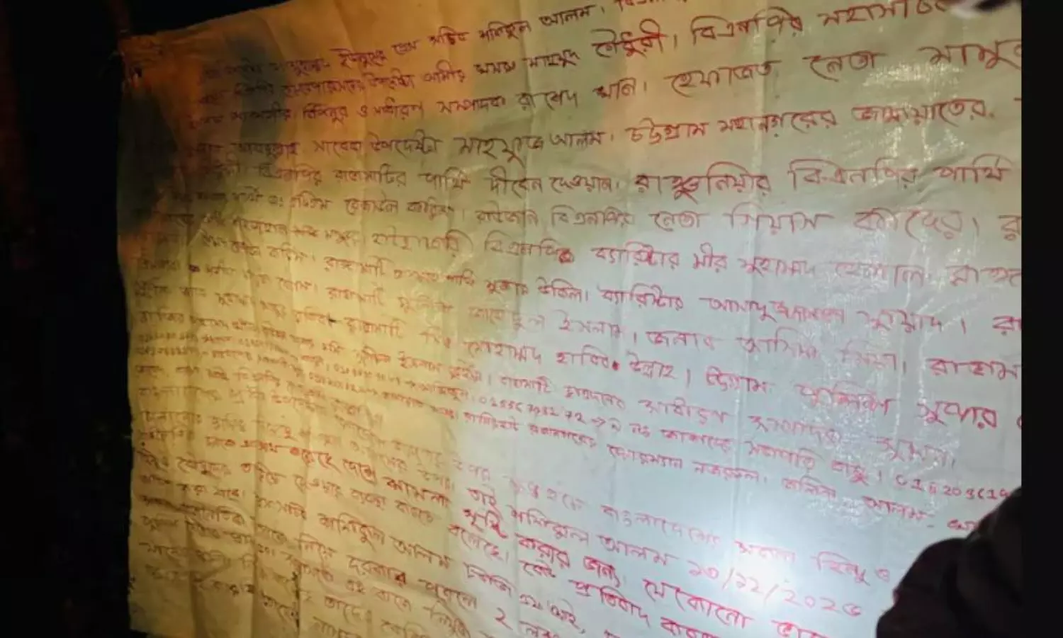 బెంగాలీలో చేతితో రాసిన ఆ బ్యానర్ లో... ఈ ప్రాంతంలోని హిందూ నివాసితులను నిశితంగా గమనిస్తున్నామని తెలియజేయడానికే ఇది అని రాసి ఉంది. “ఇస్లాం, ముస్లిం సమాజానికి వ్యతిరేకంగా కార్యకలాపాలకు పాల్పడుతున్నారని మీపై ఆరోపణలు ఉన్నాయి.. మీ సమావేశాలు, కార్యకలాపాలను వెంటనే ఆపాలి.. ఈ ఆదేశాలు మీరు పాటించకపోతే తీవ్ర పరిణామాలు ఎదుర్కోవాల్సి ఉంటుంది.. మిమ్మల్ని ఎవరూ రక్షించలేరు” అని ఉంది.