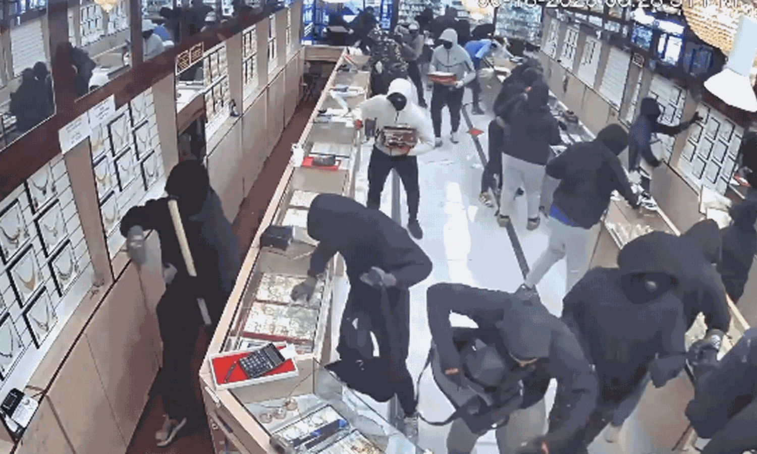 ఉత్తర కాలిఫోర్నియాలోని ఫ్రీమాంట్ నగరంలో ఉన్న 'కుమార్ జువెలర్స్'లో ఈ షాకింగ్ ఘటన జరిగింది. 2025, జూన్ 18న జరిగిన ఈ దోపిడీకి సంబంధించిన సిసిటివి విజువల్స్ను అమెరికా న్యాయ శాఖ తాజాగా బయటపెట్టింది. స్టోర్ బయట వరుసగా కార్లు వచ్చి ఆగడం, వాటిలో నుంచి సుమారు 24 మంది మాస్కులు ధరించిన వ్యక్తులు లోపలికి దూసుకురావడం అంతా రెప్పపాటులో జరిగిపోయింది. వారి చేతుల్లో సుత్తెలు, పెద్ద బ్యాగులు ఉన్నాయి. షాపులోకి రాగానే ఎవరితోనూ మాట్లాడకుండా నేరుగా గ్లాస్ కేసులను పగలగొట్టడం మొదలుపెట్టారు. కేవలం ఒక నిమిషం పది సెకన్ల వ్యవధిలోనే షాపులోని 80 శాతం ఆభరణాలను బ్యాగుల్లో నింపుకుని అక్కడి నుంచి పరారయ్యారు.