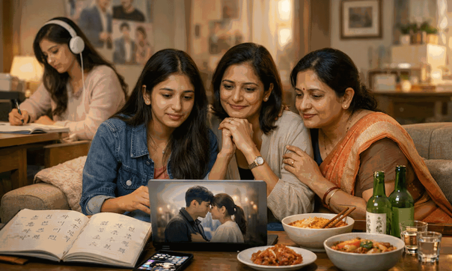 కొరియన్ కల్చర్ ఇండియాలోకి ప్రవేశించడం వెనుక ఒక దశాబ్ద కాలపు ప్రయాణం ఉంది. 2012లో సై పాడిన 'గంగ్నమ్ స్టైల్' పాటతో కొరియన్ మ్యూజిక్ పట్ల ఆసక్తి మొదలవగా, కరోనా సమయంలో నెట్ఫ్లిక్స్ వంటి ఓటీటీ ప్లాట్ఫామ్స్ దీనిని ఇంటింటికీ చేర్చాయి. ముఖ్యంగా 'క్రాష్ ల్యాండింగ్ ఆన్ యూ' వంటి డ్రామాలు భారతీయులను కట్టిపడేశాయి. దీనికి కారణం కొరియన్ కథల్లో ఉండే కుటుంబ విలువలు, భావోద్వేగాలు మన ఇండియన్ కల్చర్కు చాలా దగ్గరగా ఉండటమే. సంప్రదాయ 'మాచో' హీరోలకు భిన్నంగా, ఎమోషన్స్ను పంచుకునే కొరియన్ హీరోల 'సాఫ్ట్ మస్కులినిటీ'ని ఇక్కడి యువత అమితంగా ఇష్టపడుతోంది.