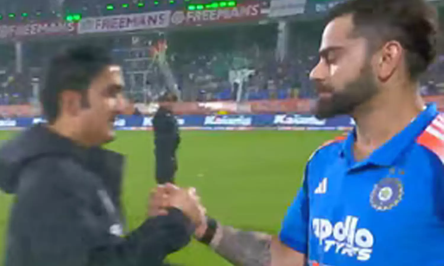 ప్రస్తుత పరిస్థితుల్లో టీమ్ ఇండియాకు సంబంధించిన ఏ చిన్న విషయాన్ని అయినా సోషల్ మీడియాలో పెడుతున్నారు. ఇలానే విశాఖ మ్యాచ్ అనంతరం కోహ్లి వ్యవహరించిన తీరునూ పోస్ట్ చేశారు. దీంతో ఇది వైరల్ గా మారింది. గంభీర్ ను చూశాక కోహ్లి బాడీ లాంగ్వేజ్ కూడా మారినట్లు పేర్కొంటున్నారు. గంభీర్ కు తప్పదన్నట్లు షేక్ హ్యాండ్ ఇవ్వడం, ఆ సమయంలో మూడ్ మారినట్లు కనిపించడాన్ని ప్రస్తావిస్తున్నారు. గంభీర్ ను దాటి వెళ్లాక మళ్లీ కోహ్లి హుషారుగా మారాడని విశ్లేషిస్తున్నారు.