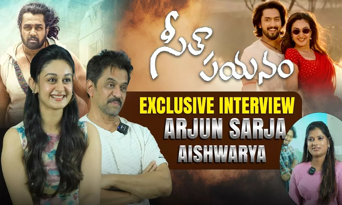 By: Tupaki Desk | 10 Feb 2026 9:31 AM ISTయాక్షన్ కింగ్ అర్జున్ తన కుమార్తె ఐశ్వర్య సర్జాని టాలీవుడ్కు పరిచయం చేస్తూ తీసిన సినిమా 'సీత పయనం'. ఈ మూవీ ప్రమోషన్స్లో భాగంగా తండ్రీకూతుళ్లు ఇద్దరూ కలిసి tupaki.com కు ప్రత్యేకంగా ఒక ఇంటర్వ్యూ ఇచ్చారు. ఇందులో సినిమా విశేషాలతో పాటు పర్సనల్ విషయాలను కూడా చాలా ఓపెన్గా షేర్ చేసుకున్నారు. ఇన్నేళ్లుగా సౌత్ ఇండస్ట్రీని ఏలుతున్న అర్జున్, ఇప్పుడు తన కూతురి కెరీర్ విషయంలో ఎంత జాగ్రత్తగా ఉన్నారో ఈ చిట్ చాట్ చూస్తే అర్థమవుతుంది.