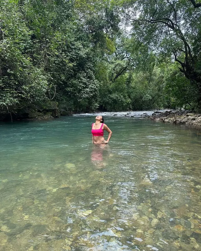 ఇక, ఈ బ్యూటీ సోషల్ మీడియాలోనూ చాలా చురుకుగా ఉంటుంది. ఎప్పటికప్పుడు తన ఫోటోలను షేర్ చేస్తూ ఆకట్టుకుంటూ ఉంటుంది. తాజాగా, ఆమె తన ఫ్యాన్స్ కి బికినీ ట్రీట్ ఇచ్చింది. నీటిలో తడుస్తూ, ఆ బికినీలో తన అందాలను ఆరబోసింది. ప్రకృతి ఒడిలో నీటిలో సేద తీరుతూ,హాట్ ఫోజులు ఇచ్చి అదరగొట్టింది. ఆమె బికినీలో దర్శనమివ్వడం ఇదేమి తొలిసారి కాదు. సినిమాలతో సంబంధం లేకుండా, ఇలా నీటిలో జలకాలాడుతూ ఆమె చాలా సార్లు ఫోటోలు షేర్ చేసింది. తాజాగా షేర్ చేసిన ఫోటోలు సైతం ప్రస్తుతం వైరల్ గా మారాయి.