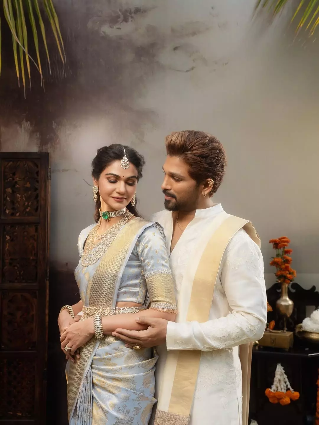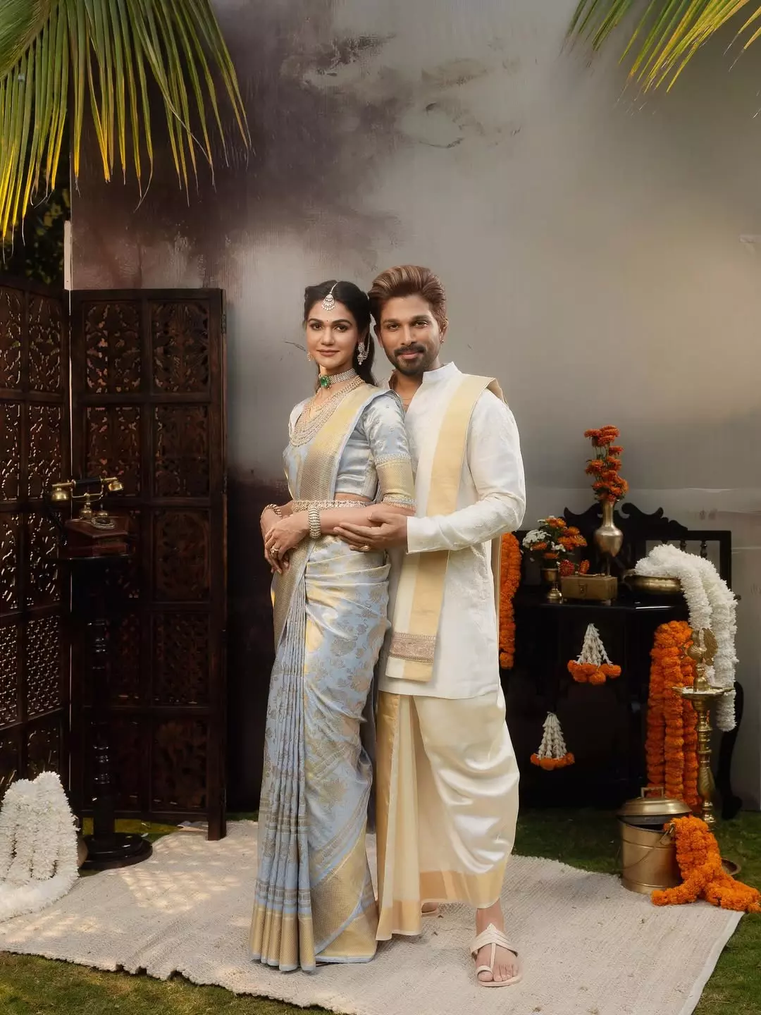 ఈ వివాహ వేడుకలో అల్లు అర్జున్ - స్నేహారెడ్డిల స్టైల్ స్టేట్మెంట్ గురించి ప్రత్యేకంగా చెప్పుకోవాలి. అల్లు అర్జున్ ఒక రిచ్ వైట్ షేర్వానీ.. జరీ అంచు పంచె కట్టులో అత్యంత స్టైలిష్గా, రాయల్ లుక్లో కనిపించారు. ఇక స్నేహారెడ్డి తన ఫ్యాషన్ సెన్స్తో మరోసారి అందరినీ మంత్రముగ్ధులను చేశారు. ఆమె ధరించిన అందమైన డిజైనర్ చీర, దానికి జతగా వేసుకున్న డైమండ్ నెక్లెస్ ఒక దేవకన్య రూపాన్ని ఆపాదించాయి. ఈ జంట కలర్ కోఆర్డినేషన్ వేడుకలో ప్రత్యేక హైలైట్గా నిలిచింది.