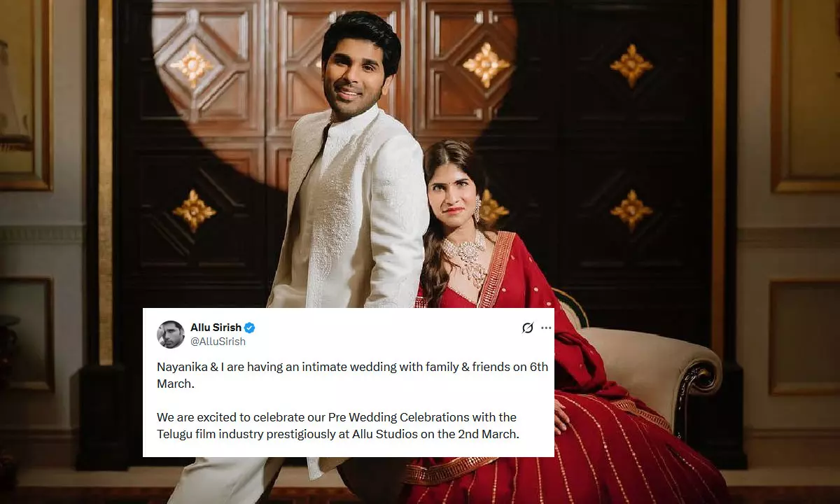 ఇక ఇప్పుడు వీరి జాడలోనే మరొక సెలబ్రిటీ జంట వివాహానికి సిద్ధమయ్యింది. వారెవరో కాదు ప్రముఖ హీరో అల్లు శిరీష్.. ఆయన ప్రేయసి నయానికా రెడ్డి. మార్చి 6వ తేదీన కుటుంబ సభ్యులు, సన్నిహితులు, బంధుమిత్రుల సమక్షంలో వివాహం చేసుకోవడానికి సిద్ధమయ్యారు. అయితే పెళ్లికి ముందే ఇప్పుడు మరో ప్రత్యేక వేడుకను వీరు ప్లాన్ చేశారు. ఈ విషయాన్ని అల్లు శిరీష్ తన అధికారిక ఎక్స్ ఖాతా ద్వారా అభిమానులతో పంచుకున్నారు. "మార్చి 6వ తేదీన నయానికా రెడ్డితో ఏడడుగులు వేయబోతున్నాను. కానీ మరో ప్రత్యేక వేడుకను పెళ్లికి ముందే ప్లాన్ చేశాము. మార్చి 2వ తేదీన అల్లు స్టూడియోస్ లో మా ప్రీ వెడ్డింగ్ సెలబ్రేషన్స్ నిర్వహించనున్నాము "అంటూ అల్లు శిరీష్ తెలిపారు.