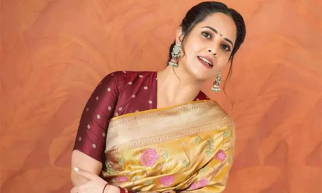 అప్పటి నుంచి గ్లామర్, పవర్ఫుల్ రోల్స్తో పాటు సోషల్ మీడియాలోనూ క్రేజ్ పెంచుకుంటూ వస్తోంది. ఇప్పుడు అనసూయ తన కొత్త లుక్తో మళ్లీ ఫ్యాన్స్ మనసులు దోచేస్తోంది. తాజాగా ఆమె షేర్ చేసిన ఫోటోలు ఇంటర్నెట్లో వైరల్గా మారాయి. బంగారు వర్ణం కలిగిన చీరలో అనసూయ సంప్రదాయ సౌందర్యాన్ని మలుపుతిప్పినట్టుగా కనిపిస్తోంది.