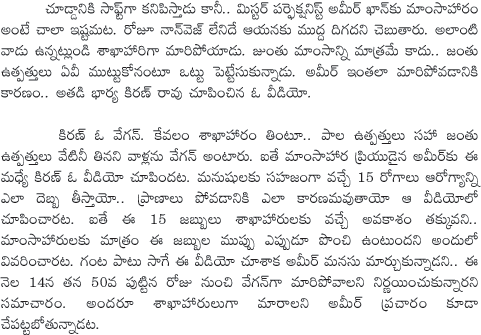 Aamir Khan quits non-vegetarian food, turns vegan