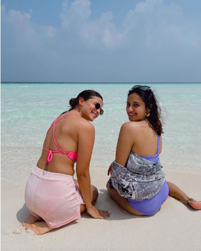 బ్యాక్ లెస్ పింక్ కలర్ టాప్ ధరించి.. లోయర్ లైట్ పింక్ షార్ట్ వేసుకుని.. మత్తెక్కించే కళ్లకు బ్లాక్ గాగుల్స్ ధరించి మాల్దీవ్స్ బీచ్ తీరంలో హొయలు పోతూ చిరునవ్వులు చిందిస్తోంది. ఈ ఫొటోని షేర్ చేసిన అలియా దీనికి `హ్యాపీ బర్త్ డే మై యూనివర్స్` అంటూ క్యాప్షన్ ఇచ్చింది. గులాబి మేనిఛాయతో పింక్ డ్రెస్ లో మెరిసిపోతున్న సాగర సుందరిలా అలియాభట్ కనిపిస్తున్న తీరుని చూసి ఆమె ఫ్యాన్స్ ఫిదా అయిపోతున్నారు.