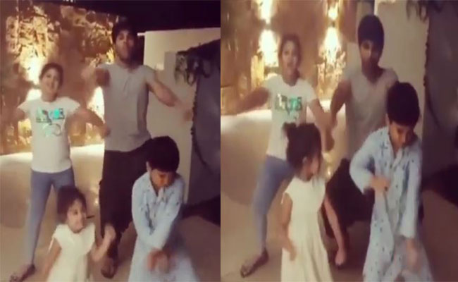 లాక్ డౌన్ లో ఇంటికే పరిమితమైన సెలబ్రిటీలు ఫ్యామిలీస్ తో ఎంజాయ్ చేస్తున్నారు. ఈ క్రమంలో అల్లు శిరీష్ తన అన్నల పిల్లలతో కలిసి డ్యాన్స్ చేస్తున్నాడు. తన పెద్దన్న బాబీ కూతురు మరియు బన్నీ పిల్లలు అయాన్ - అర్హ లతో కలిసి స్టెప్పులేశాడు శిరీష్. ఈ వీడియోని స్నేహా రెడ్డి ఇంస్టాగ్రామ్ లో పోస్ట్ చేస్తూ ''ఫన్ విత్ శిరి బాబాయ్'' అని కామెంట్ పెట్టింది. దీంట్లో అల్లు అయాన్ తన బాబాయ్ శిరీష్ కి పోటీగా స్టెప్స్ వేయడం కనిపిస్తోంది. బన్నీ కొడుకు ఎంత ఎనర్జీగా కనిపిస్తాడో స్పెషల్ గా చెప్పనవసరం లేదు. తన డ్యాన్స్ తో మరోసారి గుర్తు చేసాడు. ఇక అర్హ అయితే తన క్యూట్ డ్యాన్స్ తో అలరిస్తోంది. ఈ పిల్లల డ్యాన్స్ చూసిన అభిమానులు మురిసిపోతున్నారు.