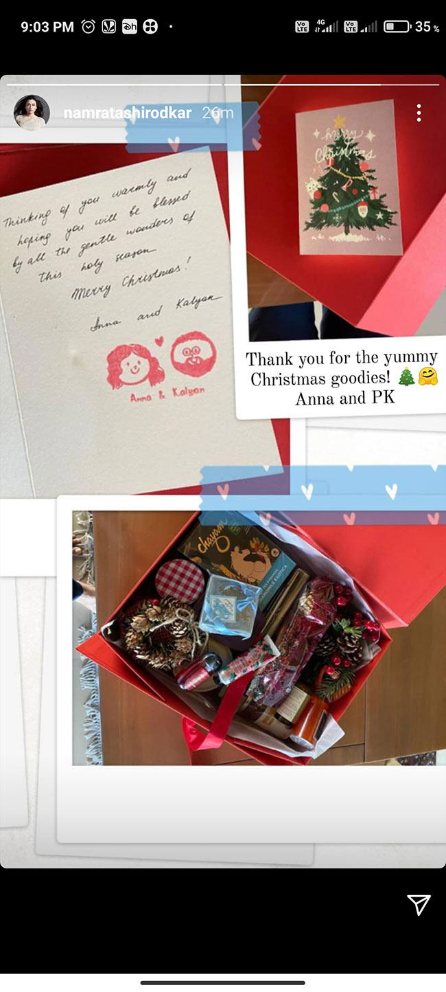 ఇటీవల పవన్ కళ్యాణ్ పుట్టినరోజు సందర్బంగా మహేష్ కూడా ట్విట్టర్ వేదికగా విష్ చేసాడు. ఆ ట్వీట్ కూడా సోషల్ మీడియాలో ఎంత వైరల్ అయ్యిందో తెలిసిందే. ఇక తాజాగా పవన్ ఫ్యామిలీ నుండి మహేష్ ఫ్యామిలీకి గిఫ్ట్ చేరడంతో మహేష్ అభిమానులు ఫుల్ ఖుషి అవుతున్నారు. ఇంతకీ ఆ గిఫ్ట్ పవన్ పంపారా.. అంటే కాదట. పవన్ భార్య అన్నా లెజ్నేవా పంపినట్లు ఇన్స్టాగ్రామ్ స్టోరీలో నమ్రత తెలిపింది. క్రిస్మస్ కానుకగా చాక్లెట్లు నిండిన ఒక స్పెషల్ బాక్స్ అలాగే ప్రత్యేకమైన నోట్ కూడా ఉందట. ఇంతకీ స్పెషల్ నోట్ లో ఏముందంటే.. మీ గురించి హృదయపూర్వకంగా ఈ పవిత్రమైన సీజన్ లో మీరు బావుండాలని, ఆశీర్వదించబడతారని కోరుకుంటున్నాను.. అన్నా, కళ్యాణ్' అని రాసి ఉందట. ఇక ఈ స్పెషల్ కానుకకు నమ్రత ప్రత్యేకంగా శుభాకాంక్షలు తెలియజేసింది. ఇలా కేవలం మహేష్ బాబు ఫ్యామిలీకి అనే కాకుండా ఇండస్ట్రీలో చాలా మంది సినీ ప్రముఖులకు అన్నా తన క్రిస్మస్ కానుకలను పంపుతున్నట్లు సమాచారం.