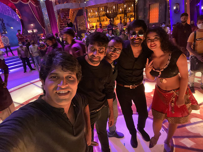 By: Tupaki Desk | 16 Oct 2020 4:40 PM ISTమాస్ మహారాజా రవితేజ ప్రస్తుతం ''క్రాక్'' సినిమాలో నటిస్తోన్న విషయం తెలిసిందే. గోపీచంద్ మలినేని దర్శకత్వంలో ఈ చిత్రం తెరకెక్కుతోంది. ఇటీవలే హైదరాబాద్ లో తిరిగి ప్రారంభమైన ఈ సినిమా ఫైనల్ షెడ్యూల్ లో శరవేగంగా చిత్రీకరణ జరుపుతున్నారు. ప్రస్తుతం ఈ సినిమాలోని ఓ మాస్ ఐటెమ్ సాంగ్ ను షూట్ చేస్తున్నట్లు చిత్ర యూనిట్ తెలియచేసింది. ఈ మాస్ నంబర్ లో రవితేజ పక్కన అప్సరా రాణి కాలుకదుపుతోంది. మ్యూజిక్ డైరెక్టర్ థమన్ కంపోజ్ చేసిన ఈ మాస్ ఐటెం నెంబర్ కు జానీ మాస్టర్ కొరియోగ్రఫీ అందిస్తున్నారు. జీకే విష్ణు సినిమాటోగ్రాఫర్ గా వర్క్ చేస్తున్నారు. తాజాగా రవితేజ - అప్సరా మధ్య షూట్ చేస్తున్న ఈ సాంగ్ కు సంబంధించిన ఓ ఫోటోని డైరెక్టర్ గోపీచంద్ మలినేని ట్విట్టర్ లో షేర్ చేశారు.
