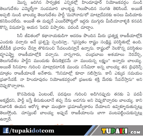 Balakrishna Targets on Politics