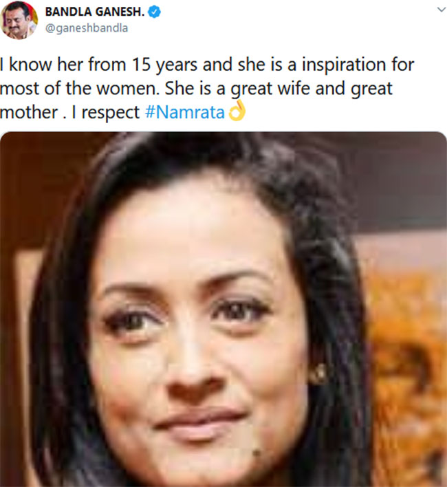 ఈ కేసులో జాతీయ మీడియా అతి అని చీవాట్లు పెట్టిన నెటిజనులు ఉన్నారు. ఇంకా విచారణలో నిజాలేవీ తేలక ముందే ఇలా ప్రముఖుల పేర్లు ప్రచారం చేయడం సరికాదన్న వాదనను ఒక సెక్షన్ బలపరిచింది. లేటెస్టుగా ప్రముఖ నిర్మాత.. నటుడు బండ్ల గణేష్ స్పందిస్తూ.. ``నమ్రత శిరోద్కర్ నాకు 15 ఏళ్లుగా తెలుసు. ఆమె ఎంతోమంది మహిళలకు స్పూర్తి నింపిన గొప్ప వ్యక్తిత్వం. ఆమె ఒక గొప్ప భార్య.. గొప్ప తల్లి.. ఆమెను నేను గౌరవిస్తాను`` అంటూ ట్వీట్ చేశారు.