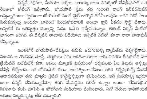 Boyapati Srinu and Devi Sri Prasad Controversy