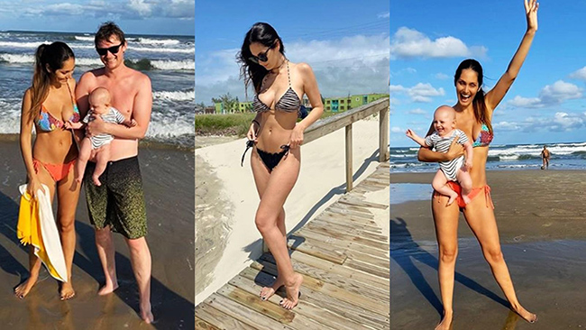 By: Tupaki Desk | 18 Feb 2020 5:00 PM ISTఐదు నెలల పసికందుతో బికినీ బీచ్ సెలబ్రేషన్ కి సిద్ధమైన మమ్మీ గారి వేషం ప్రస్తుతం అంతర్జాలంలో హాట్ టాపిక్ గా మారింది. ఇంతకీ ఎవరా కాంప్లేన్ మమ్మీ? అంటే.. వివరాల్లోకి వెళ్లాలి. పేరు బ్రూనా అబ్దుల్లా. టాప్ మోడల్ కం కథానాయికగా సుపరిచితం. మాజీ మిస్ గానూ పాపులర్. ఇంతకుముందు అలన్ ఫ్రేజ్ అనే విదేశీని పెళ్లాడిన బ్రూనాకు 5 నెలల పసికందు ఉంది. ఇసాబెల్లా అనేది బేబి గాళ్ పేరు. అయితే ఆ బేబీని తొలిసారిగా బీచ్ సందర్శనకు తీసుకుని వెళ్లింది. భర్త .. కిడ్ తో పాటు బ్రూనా ఫుల్ గా ఎంజాయ్ చేస్తున్న ఫోటోల్ని ఇదిగో ఇలా అంతర్జాలం లో షేర్ చేసింది.