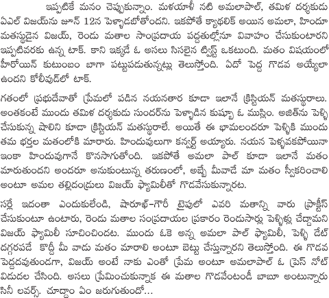 Caste Problems for Amala Paul and Director Vijay Marriage