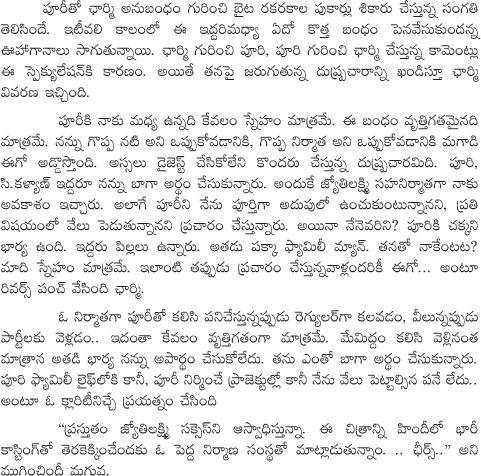Charmi responds over Rumours