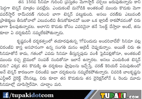 Chiranjeevi More Care About Ram charan