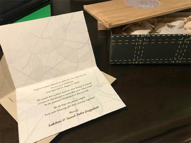 By: Tupaki Desk | 25 Aug 2020 1:00 PM ISTకరోనా టైం లో పెళ్లి చేసుకున్న రానా చాలా తక్కువ మంది బంధు మిత్రులను మాత్రమే ఆహ్వానించాడు. పెళ్లికి హాజరు కాని వారు వర్చువల్ రియాల్టీలో చూడాల్సిందిగా రానా అందుకు సంబంధించిన కిట్ ను పంపించారు. నాని అందులో పెళ్లి చూస్తున్నట్లుగా ఫొటో షేర్ చేశాడు. ఇంకా పలువురు బంధు మిత్రులు కూడా ఇంటి వద్దే ఉండి రానా పెళ్లిని చూసేశారు. ఇక పెళ్లికి హాజరు కాని సినీ ప్రముఖులకు సురేష్ బాబ దంపతులు ఒక కిట్ ను పంపించారు. అందులో ఒక లేఖ తో పాటు బహుమానాలు ఉన్నాయట.