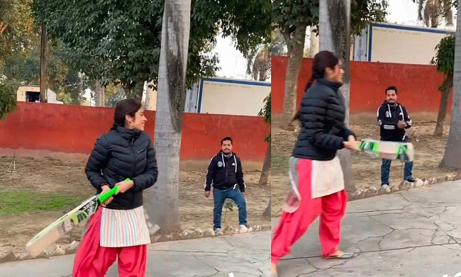అదే తీరుగా అతిలోక సుందరి జాన్వీ కపూర్ క్రికెట్ ఆట ఆడింది. ఒక శీతాకాలపు మధ్యాహ్నం ఉత్తమ సమయం!! అంటూ జాన్వీ ఈ ఆటను ఆడేయడం ఆసక్తికరం. జాన్వీ బ్యాట్ తో బంతిని కొడుతున్న వీడియో వైరల్ గా మారింది ఇపుడు. పాటియాలా సల్వార్ కమీజ్ - జాకెట్ ధరించి జాన్వీ ఆటకు ఉపక్రమించిందని వీడియో చూస్తే అర్థమవుతోంది. ``నేను ప్రో అయ్యాను అని చెప్పడం సురక్షితమేనా`` అన్న వ్యాఖ్యను జాన్వి ఈ వీడియోకి జోడించింది.