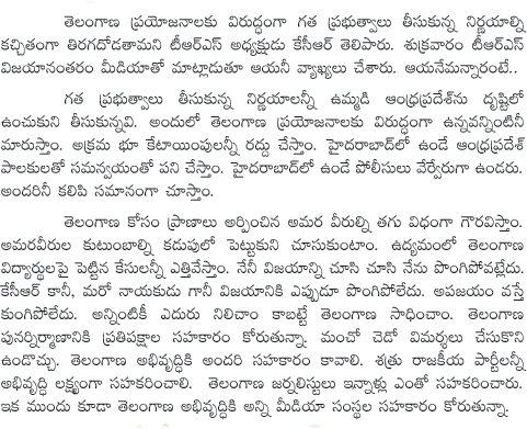 KCR Press Meet After Win