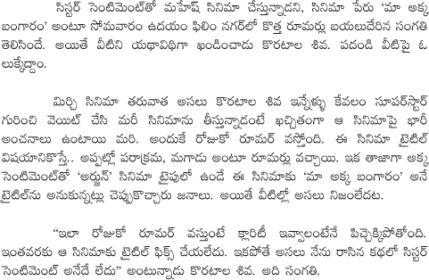 Koratala Siva Responds Over Rumours on Mahesh Movie