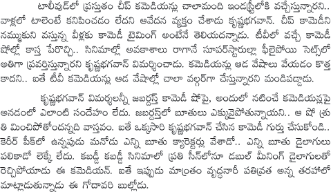 Krishna Bhagvan comments on Jabardast Comedians
