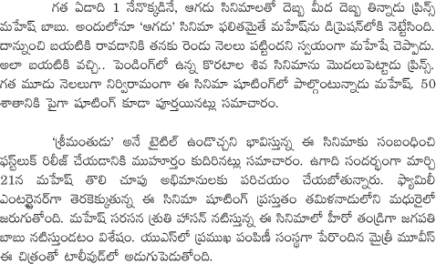 Mahesh and Koratala Movie First Look date