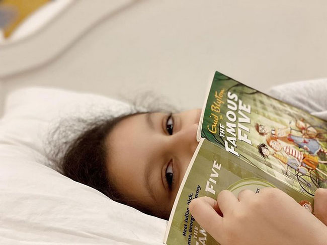 కేవలం ఆటపాటలేనా.. అప్పుడప్పుడు తనలోని క్రియేటివిటీని పెంచే వ్యాపకాలు తనకు అలవాటే. ముఖ్యంగా సీతా పాపకు బుక్ రీడింగ్ హ్యాబిట్ మామ్ డాడ్ నుంచి అలవడిందట. ఇదిగో ఇలా చేతిలో ఏదో ఒక పుస్తకం లేనిదే తనకు నిద్ర పట్టదు. `ఫేమస్ ఫైవ్` స్టోరీ బుక్ చదువుతూ ఇదిగో ఇలా ఓ ఫోజిచ్చింది క్యూట్ గా. తాను కూడా ఎల్లపుడూ ఫేమస్ ఫైవ్ లో ఒకరిగా ఉంటుంది కాబట్టి ఇలా స్మైలిచ్చిందన్నమాట. అన్నట్టు సితార డెబ్యూ గురించి ఇప్పటికే ఘట్టమనేని ఫ్యాన్స్ లో చర్చ మొదలైంది. అందుకు ఇంకా సమయం ఉందని నమ్రత మాట దాట వేశారు. అయితే ఏదో ఒక సమయం సందర్భం చూసుకుని బాలనటిగా సితార ఎంట్రీ ఉంటుందనే అభిమానులు భావిస్తున్నారు. కాస్త వేచి చూడాల్సి ఉంది.