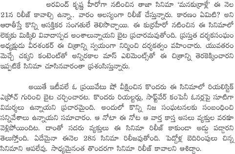 Mana kurralle Movie Release Postponed