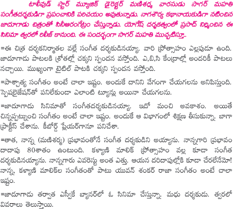 Mani sharma Son Sagar Mahathi on Mani sharma