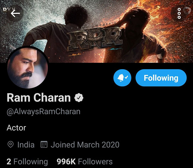 సౌత్ కు చెందిన ఏ స్టార్ హీరోకు కూడా ఇంత ఫాస్ట్ గా మిలియన్ ఫాలోవర్స్ దక్కలేదు. అతి తక్కువ సమయంలోనే ట్విట్టర్ లో మిలియన్ ఫాలోవర్స్ ను దక్కించుకుని రామ్ చరణ్ రికార్డ్ దక్కించుకున్నాడు. చరణ్ చాలా చాలా అరుదుగా ట్వీట్స్ చేస్తున్నాడు. అయితే ఆయన చేస్తున్న ట్వీట్స్ లో ఎక్కువ శాతం ఆర్ఆర్ఆర్ సినిమా గురించిన విశేషాలు ఉంటున్నాయి. పాన్ ఇండియా రేంజ్ లో క్రేజ్ ఉన్న ఆర్ఆర్ఆర్ సినిమా ట్వీట్స్ వల్ల ఎక్కువ మంది ఫాలోవర్స్ చరణ్ ఖాతాకు వచ్చి చేరుతున్నారనే అభిప్రాయం వ్యక్తం అవుతోంది.