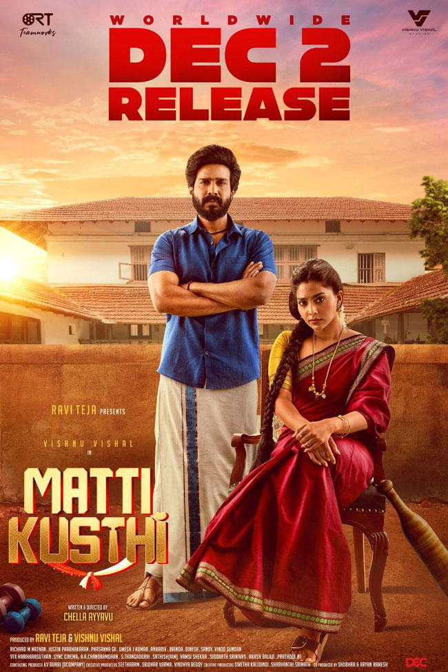'మట్టి కుస్తీ' చిత్రాన్ని డిసెంబర్ 2న ప్రపంచవ్యాప్తంగా ప్రేక్షకుల ముందుకు తీసుకురానున్నట్లు నిర్మాతలు ప్రకటించారు. ఈ సందర్భంగా వదిలిన అనౌన్స్ మెంట్ పోస్టర్ లో ఐశ్వర్య కుర్చీపై కూర్చుని ఇంటెన్స్ గా చూస్తుండగా.. విష్ణు విశాల్ ఆమె వెనుక నిలబడి ఉన్నాడు. ఫస్ట్ లుక్ ద్వారా సినిమాలో యాక్షన్ ని సూచించగా.. లేటెస్ట్ పోస్టర్ సినిమాలో హీరోయిన్ పాత్రకు ఉన్న ప్రాధాన్యతను తెలియజేస్తోంది.