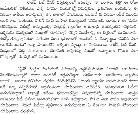 Naa Bangaaru Talli Movie Talk
