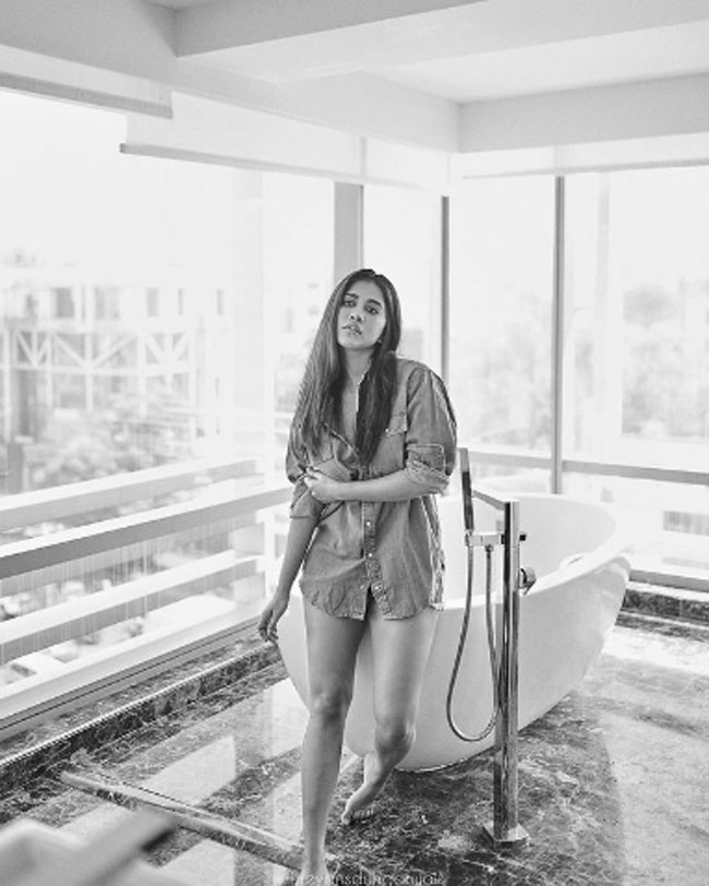 By: Tupaki Desk | 19 Feb 2021 9:00 PM ISTసినీ ఇండస్ట్రీలో పేరుకు తగ్గట్టుగానే యువహీరోయిన్ నభానటేష్ తన అందాలతో కుర్రకారును అబ్బా అనిపిస్తుంది. కెరీర్ ప్రారంభంలో గ్లామర్ పరంగా దూరం మెయింటైన్ చేసిన నభా.. ఇస్మార్ట్ శంకర్ నుండి విపరీతంగా గ్లామర్ డోస్ పెంచేసింది. అప్పటినుండి వయ్యారి సినిమా పాటలలో డ్యూయెట్స్, షూటింగ్స్ లేనప్పుడు గ్లామరస్ ఫోటోషూట్స్ అంటూ రెచ్చిపోతుంది. సినిమాలేమో గాని ఫోటోషూట్స్ మాత్రం ఆదరగొడుతుంది. సోషల్ మీడియాలో నభా ఫాలోయింగ్ మిలియన్స్ లో ఉంది. ఇంస్టాగ్రామ్ లో దాదాపు ఇరవై లక్షల ఫాలోయర్స్ ఉన్నారు అమ్మడికి. తాజాగా బ్లాక్ అండ్ వైట్ గ్లామరస్ షూట్ ఒకటి చేసింది. ఓ జీన్స్ చొక్కా ఒకటి వేసుకొని అలా బాత్ టబ్బుకు ఆనుకొని నిలబడింది. ఆ పోజులో నభాను చూస్తే ఫిదా అవ్వాల్సిందే.