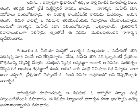 Nagarjuna Confirms Movie With Mahesh