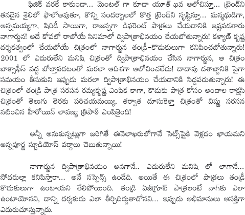 Nagarjuna Dual Role in his Upcoming Movie