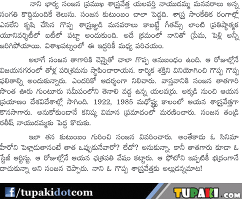 Nani Wife Sanjana on tollywood