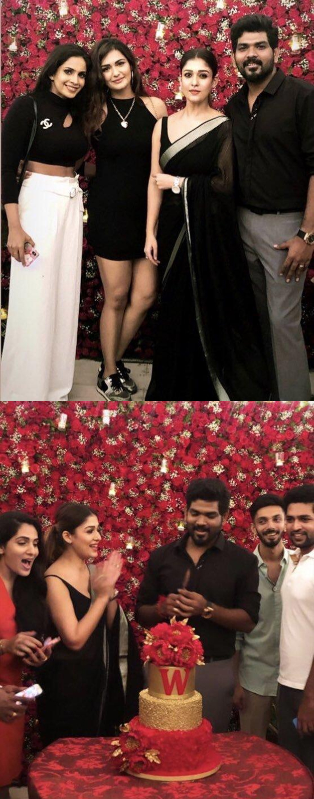 నేడు అంటే సెప్టెంబర్ 18వ తారీకు విఘ్నేష్ శివన్ బర్త్డే. ప్రియుడి బర్త్ డే సందర్బంగా నిన్న అర్థరాత్రి 12 గంటల తర్వాత నయన్ పార్టీ ఏర్పాటు చేసింది. విఘ్నేష్ శివన్ సర్ ప్రైజ్ అయ్యే విధంగా నయన్ బర్త్ డే పార్టీని ఏర్పాటు చేసింది. ఈ పార్టీలో సెలబ్రెటీలు బ్లాక్ థీమ్ తో కనిపించారు. ఈ పార్టీలో దర్శకుడు అట్లీ కుమార్.. సంగీత దర్శకుడు అనిరుధ్ మరియు ఇంకా విఘ్నేష్ స్నేహితులు పాల్గొన్నారు. గోల్డ్ కేక్ పై 'డబ్ల్యూ' అనే అక్షరా రాసి ఉంది. విఘ్నేష్ శివన్ ను నయన్ విక్కీ అని పిలుస్తుంది. అందుకే డబ్ల్యూ అనే అక్షరంను కేక్ పై పెట్టారు.