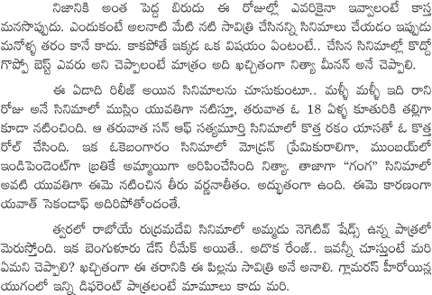 Nithya Menon in Tollywood Movies