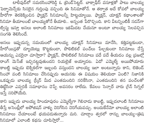No Mass Movies For Balakrishna