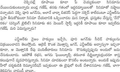 NTR and Puri Jagannath Remunerations