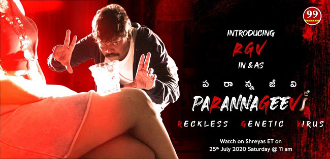 కాగా ఈ రోజు రామ్ గోపాల్ వర్మ ''పవర్ స్టార్'' మూవీ ట్రైలర్ రిలీజ్ చేయడంతో.. ఇప్పుడు దానికి పోటీగా ''పరాన్నజీవి'' ఫస్ట్ లుక్ రిలీజ్ చేసింది చిత్ర యూనిట్. రామ్ గోపాల్ వర్మని ఇమిటేట్ చేసే జబర్ధస్త్ కమెడియన్ షకలక శంకర్ ని ఈ సినిమాలో ఆర్జీవీగా చూపించబోతున్నారు. ఈ పోస్టర్ లో షకలక శంకర్ ఒక అమ్మాయి తొడలపై క్లోజ్ షాట్ పెడుతున్నట్లు వర్మ శైలిలో డిజైన్ చేసారు. అంతేకాకుండా ఆర్జీవీ ని టార్గెట్ చేస్తున్నట్లు డైరెక్ట్ గా చెప్పకుండా "PARANNAGEEVI" టైటిల్ పోస్టర్ లో 'R G V' లెటర్స్ హైలైట్ అయ్యేలా డిజైన్ చేశారు. అంతేకాకుండా దీనికి ' Reckless Genetic Virus' అనే ట్యాగ్ లైన్ కూడా పెట్టారు.