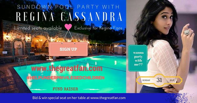 రెజీనా కసాండ్రాతో సండే రోజున పార్టీ అంటే ఎవరు వద్దనగలరు? ఈ నెల 31న జరిగే ఓ పార్టీకి రెజీనా ఆహ్వానం పలుకుతోంది. అయితే.. సరదా కోసం చేసుకుంటున్న పార్టీ కాదు. ఓ నిస్సహాయ చిన్నారుల కోసం ఏర్పాటు చేసిన ఓ ప్రత్యేకమైన పార్టీ. దీని గురించి రెజీనా స్వయంగా వివరించి మరీ ఆహ్వానించింది. ' లైఫ్ ఈజ్ ఏ బాల్ - టీచ్ ఫర్ ఛేంజ్ - ఆదిత్య మెహతా ఫౌండేషన్ లంటే నాకు చాలా ఇష్టం. వారు సమాజానికి చేస్తున్న సేవలు అద్భుతం. వారికి సాయం చేసేందుకు ఏదైనా చేద్దామని అనిపించింది. అందుకే ఓ సన్ డౌనర్ ఏర్పాటు చేశాం' అని చెప్పింది రెజీనా.