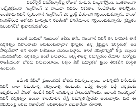 Pawan kalyan may take Direction Responsibilities