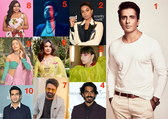 2020లో అత్యధిక ప్రేక్షకాధరణ పొందిన ఏషియన్ సెలబ్రటీల జాబితాను విడుదల చేయగా అందులో నెం.1 గా సోనూసూద్ నిలిచాడు. కరోనా లాక్ డౌన్ సమయంలో రియల్ హీరోగా నిలిచిన సోనూసూద్ కు కళ్లు మూసుకుని ఓట్లు గుద్దేశారు జనాలు. ప్రభాస్ కు సాహో సినిమా కారణంగా మంచి పేరు వచ్చింది. అందుకే 7వ స్థానంలో నిలిచాడు. యూనివర్శిల్ హీరోయిన్ గా పేరు దక్కించుకున్న మన ఇండియన్ హీరోయిన్ ప్రియాంక చోప్రాకు నెం.6 స్థానం దక్కింది. ఆమె తదుపరి స్థానం మన ప్రభాస్ కు దక్కింది. ఇది ప్రభాస్ అభిమానులకు మాత్రమే కాకుండా మొత్తం సౌత్ ఇండియన్ సినీ ప్రేక్షకులకు గర్వకారణం అనడంలో సందేహం లేదు.